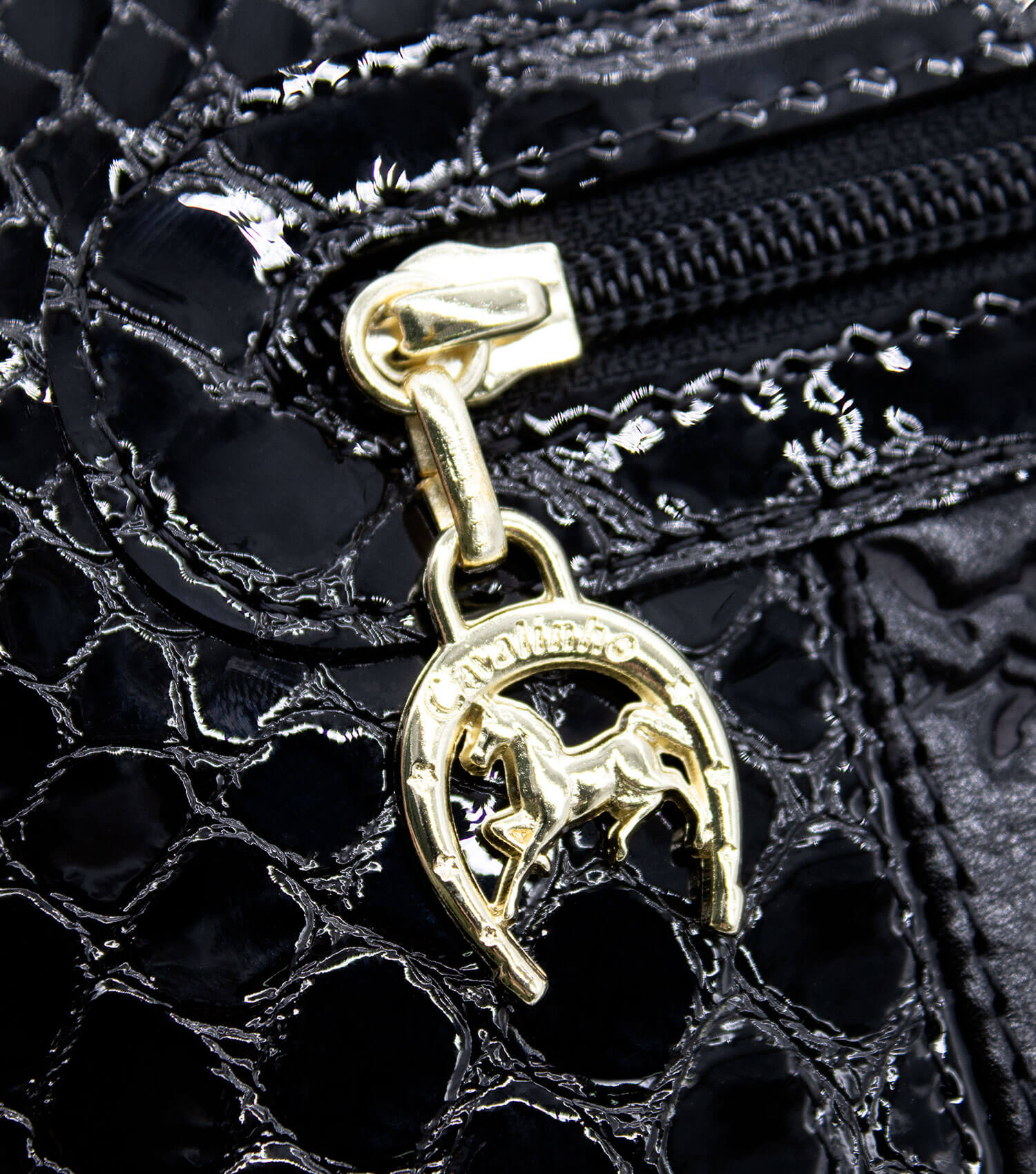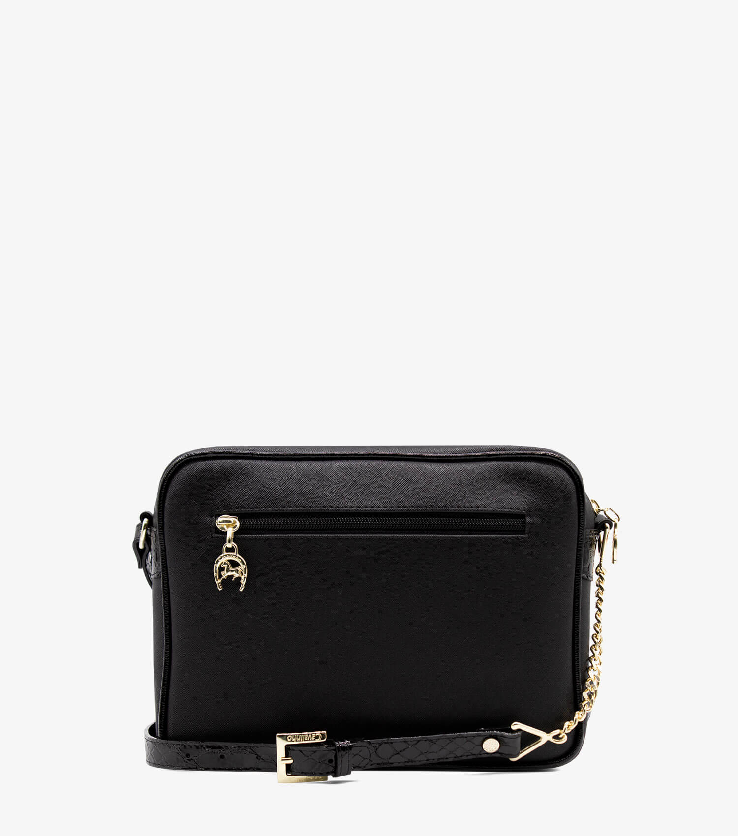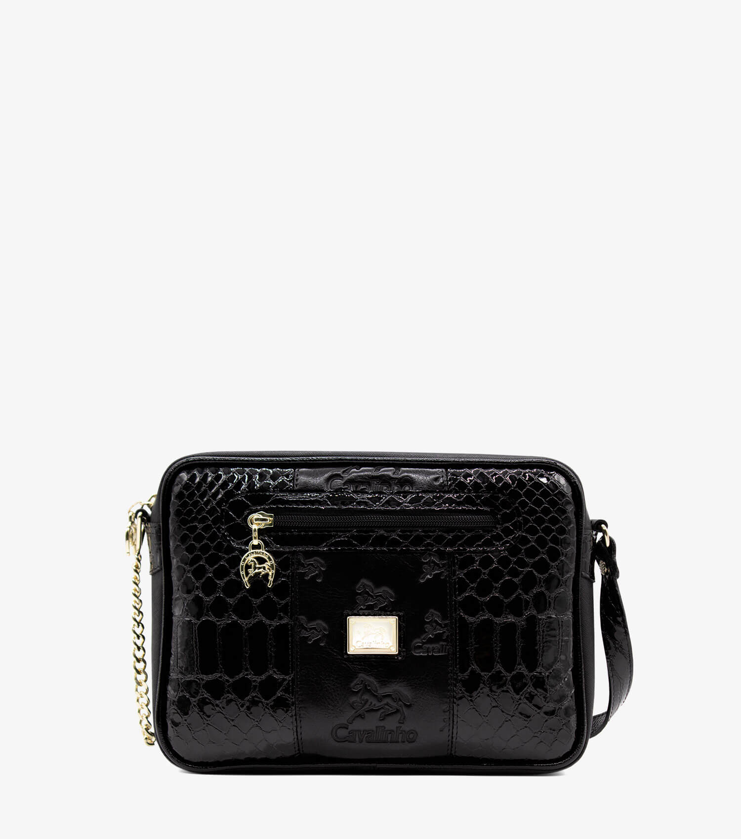 Alça ajustável de ombro e tiracolo em pele e corrente.