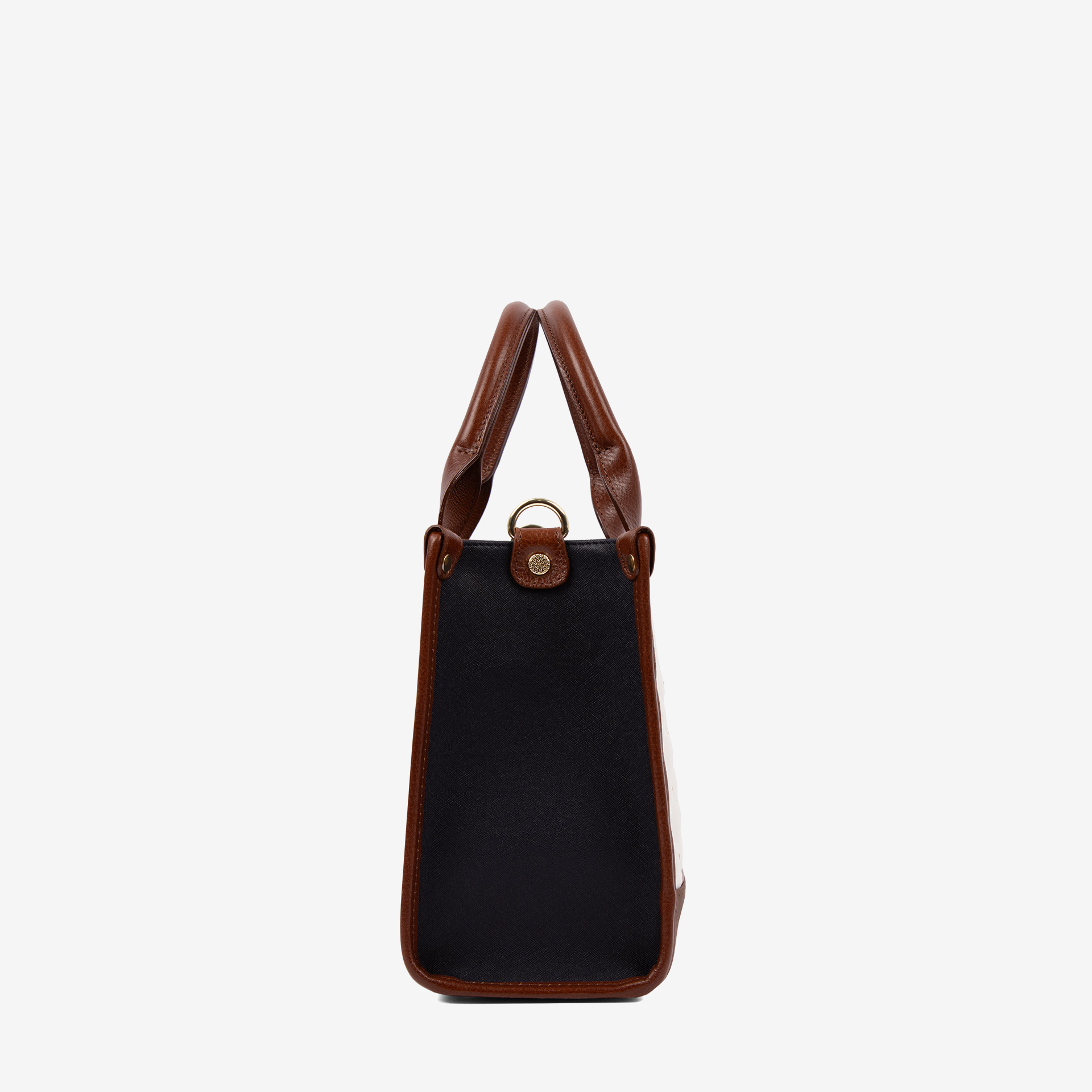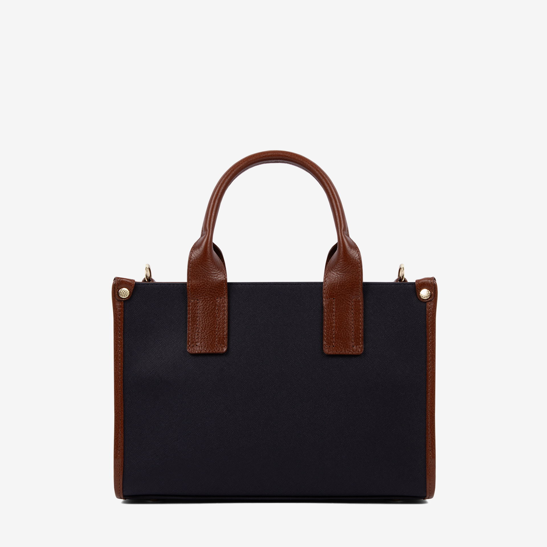 Duas asas de mão em pele e alça de tiracolo removível em poliéster.