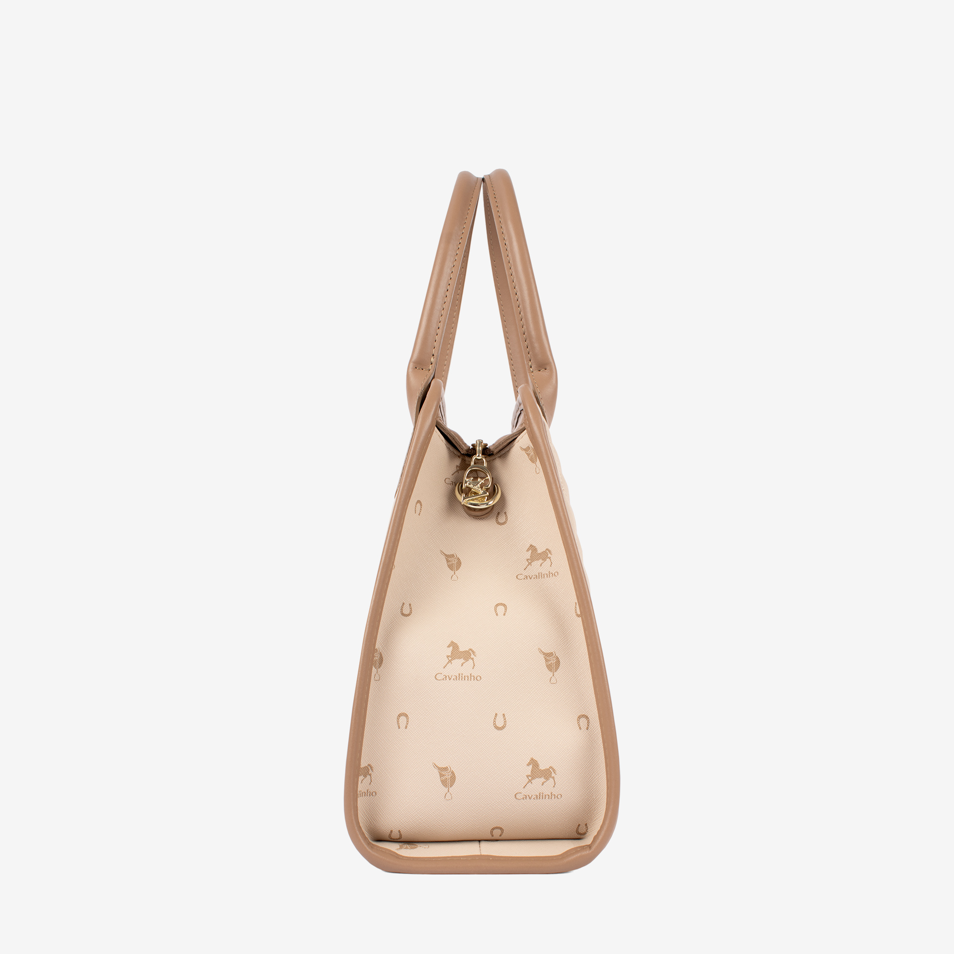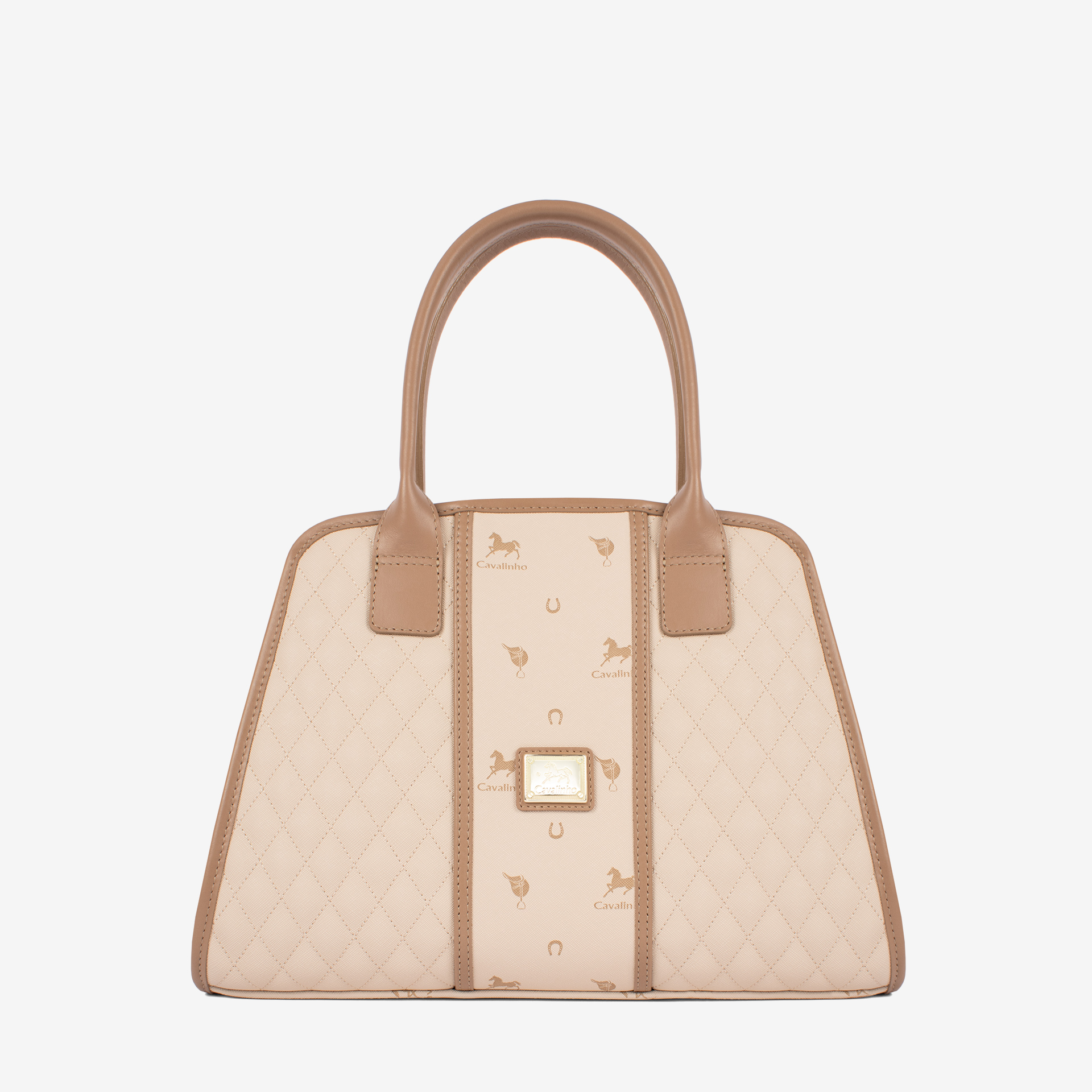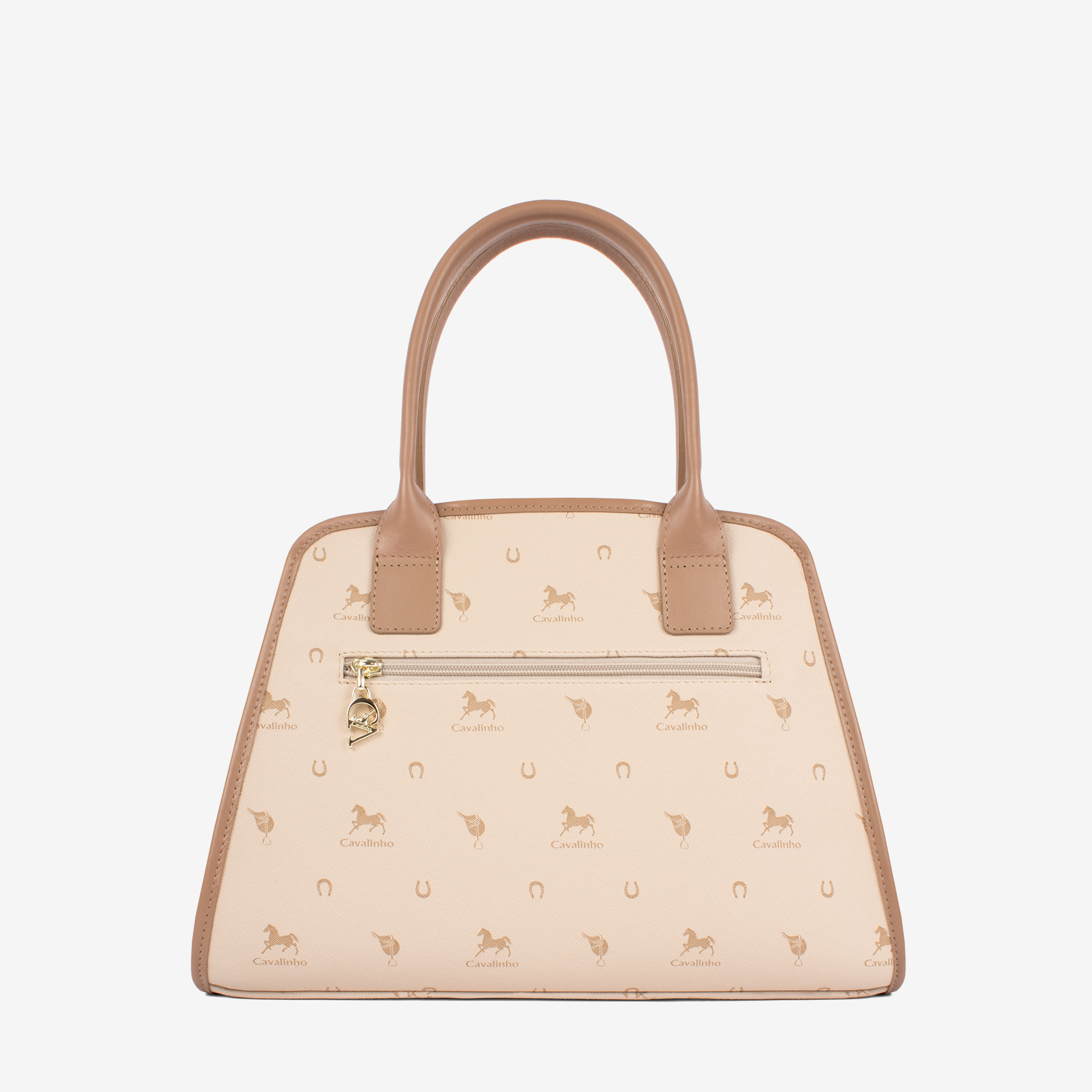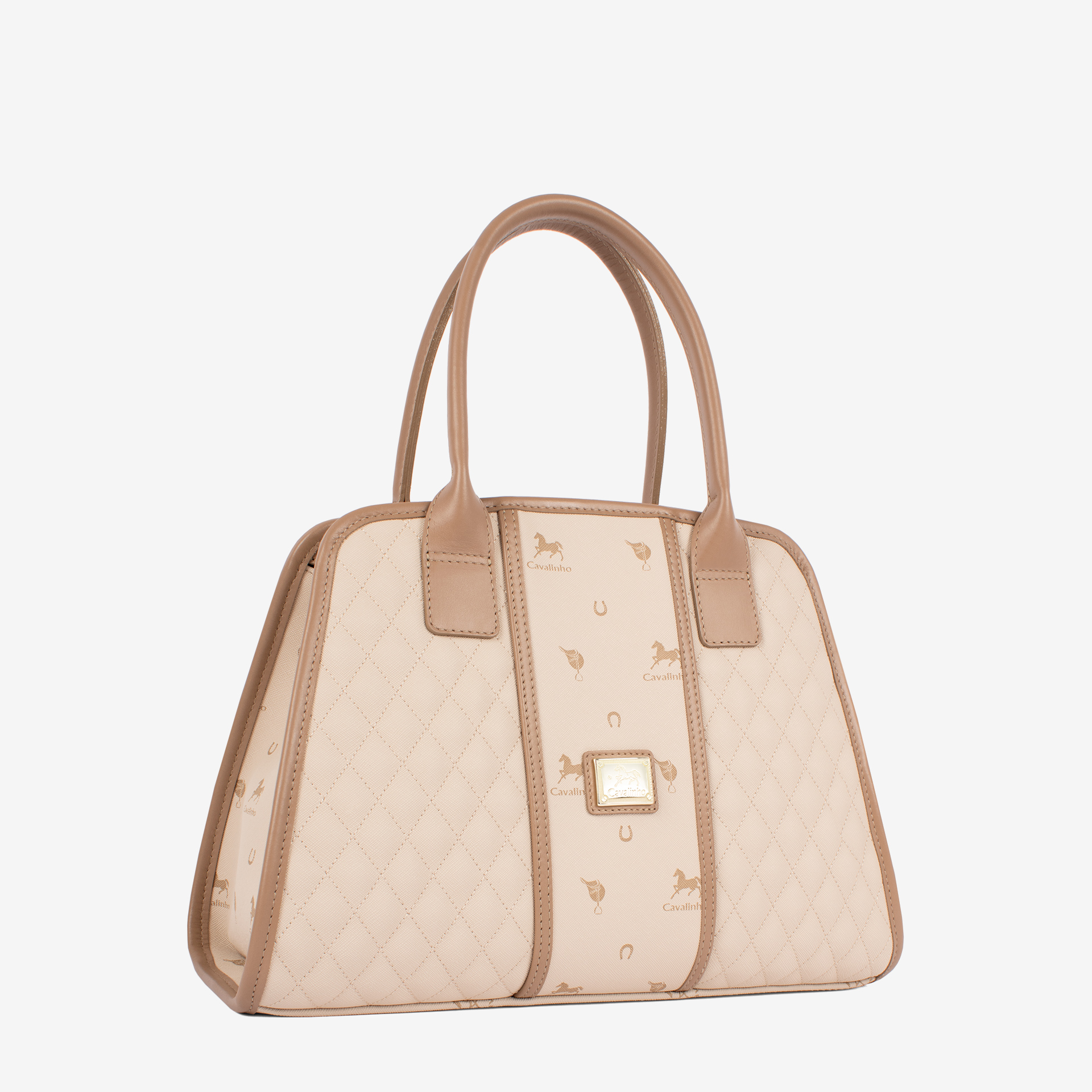 Mala da marca Cavalinho em tela bege com detalhes em pele genuína bege.