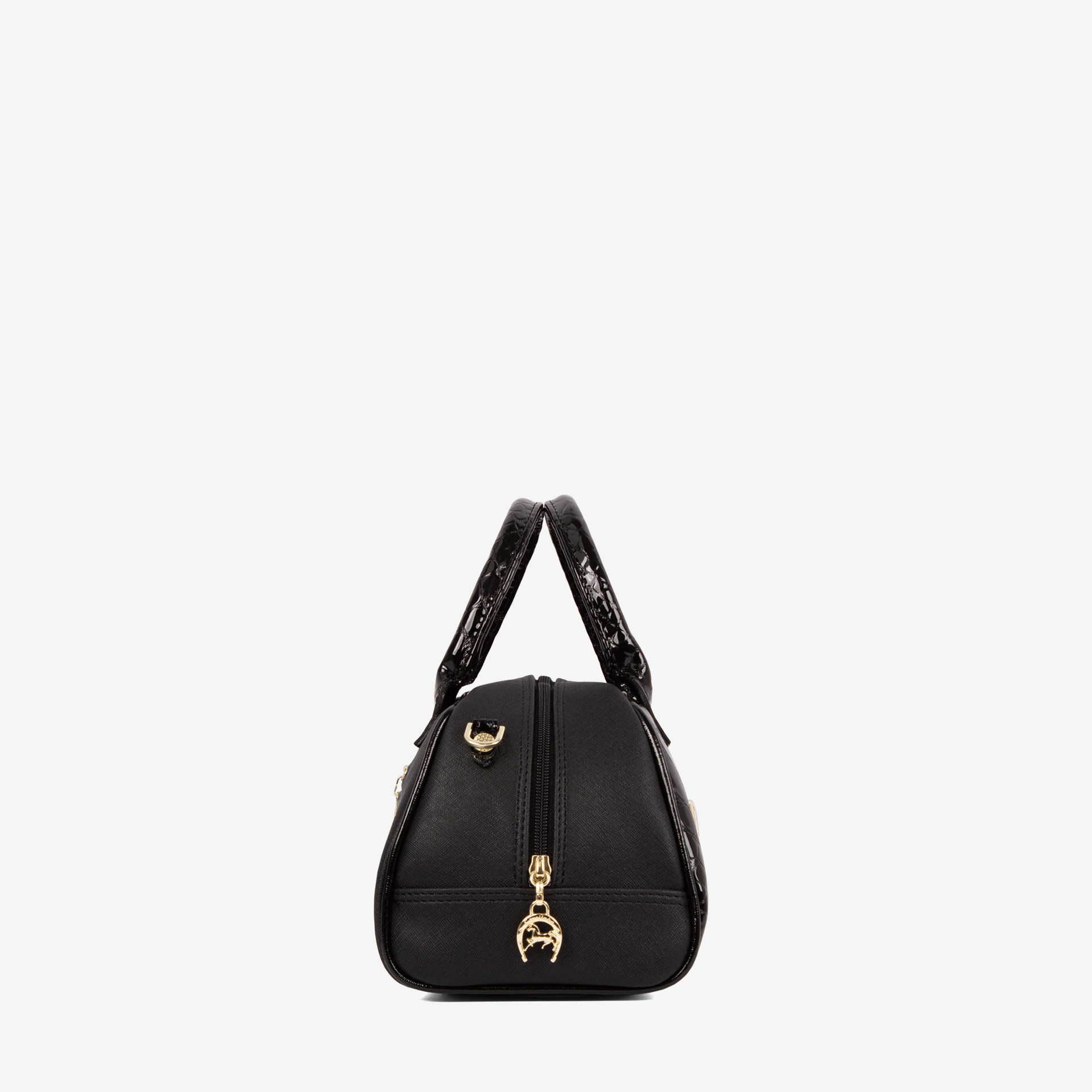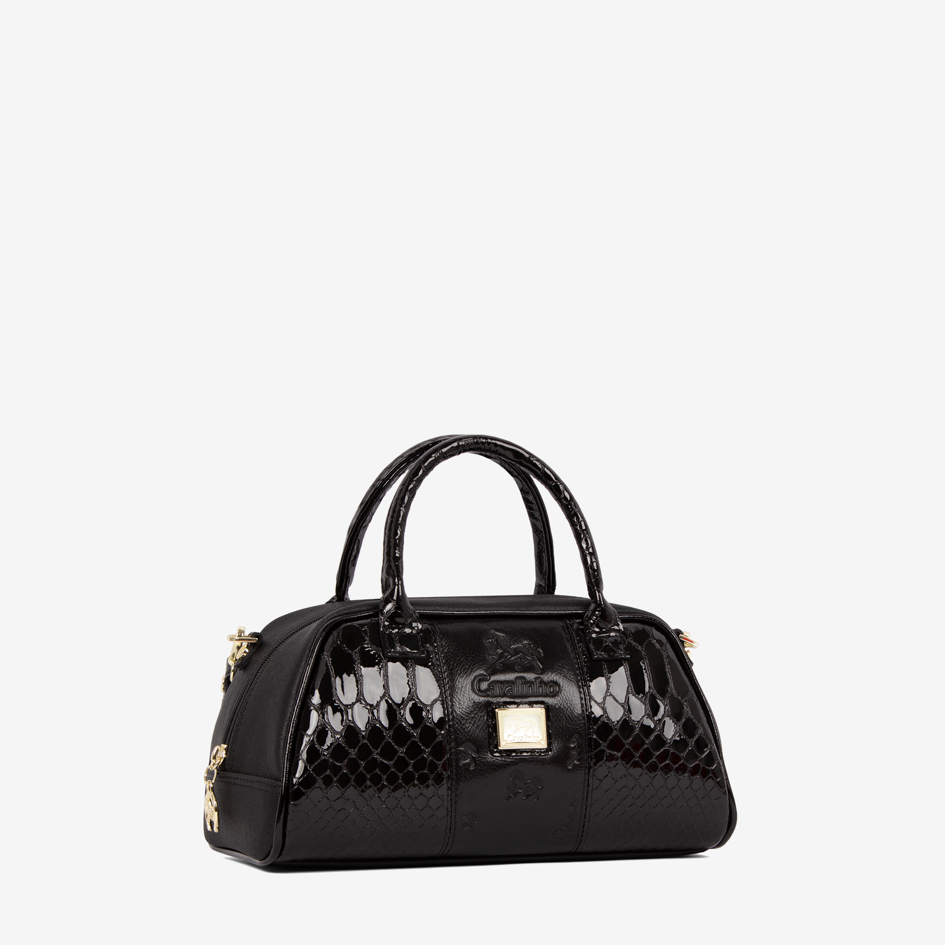 Mala da marca Cavalinho em tela preta com detalhes em pele genuína preta.