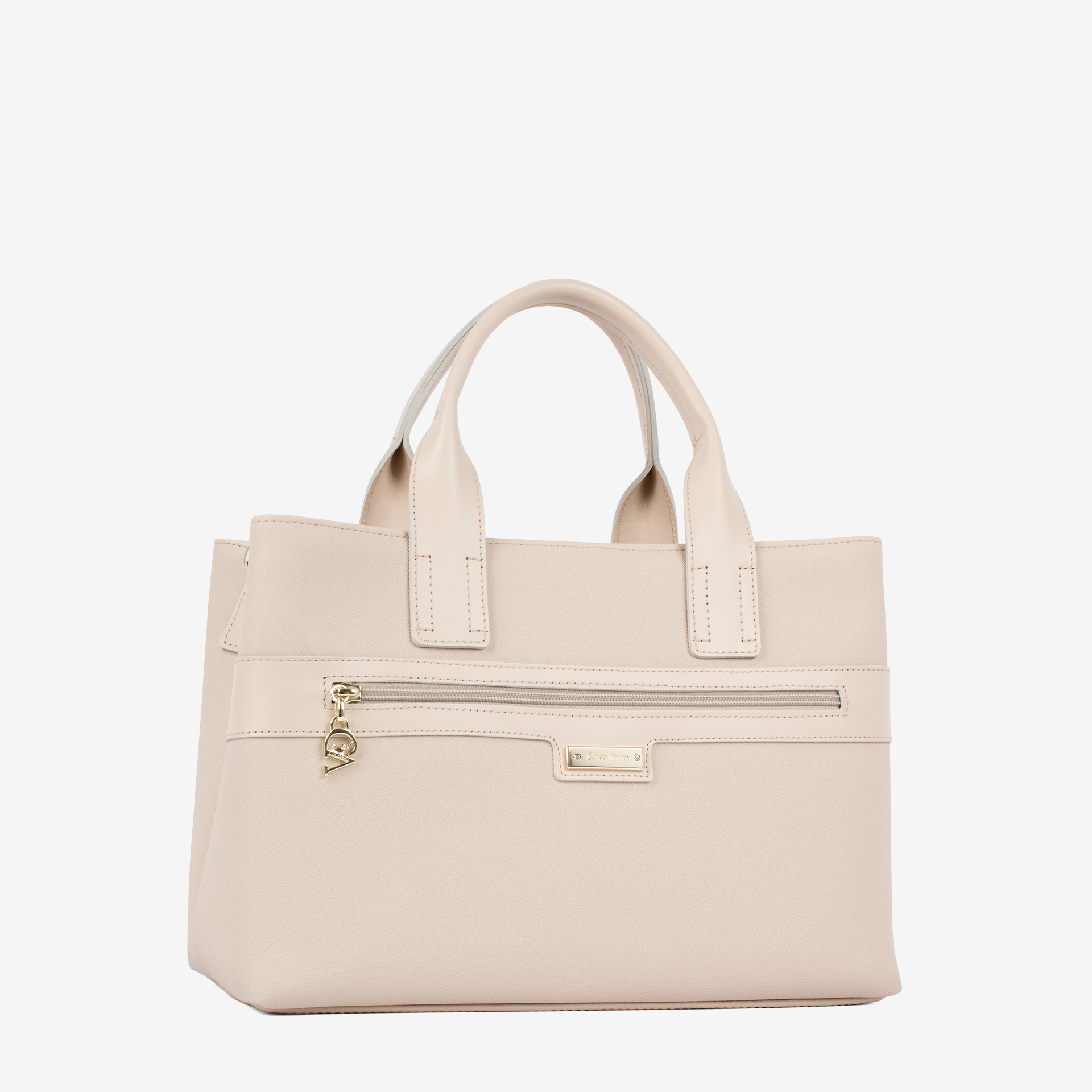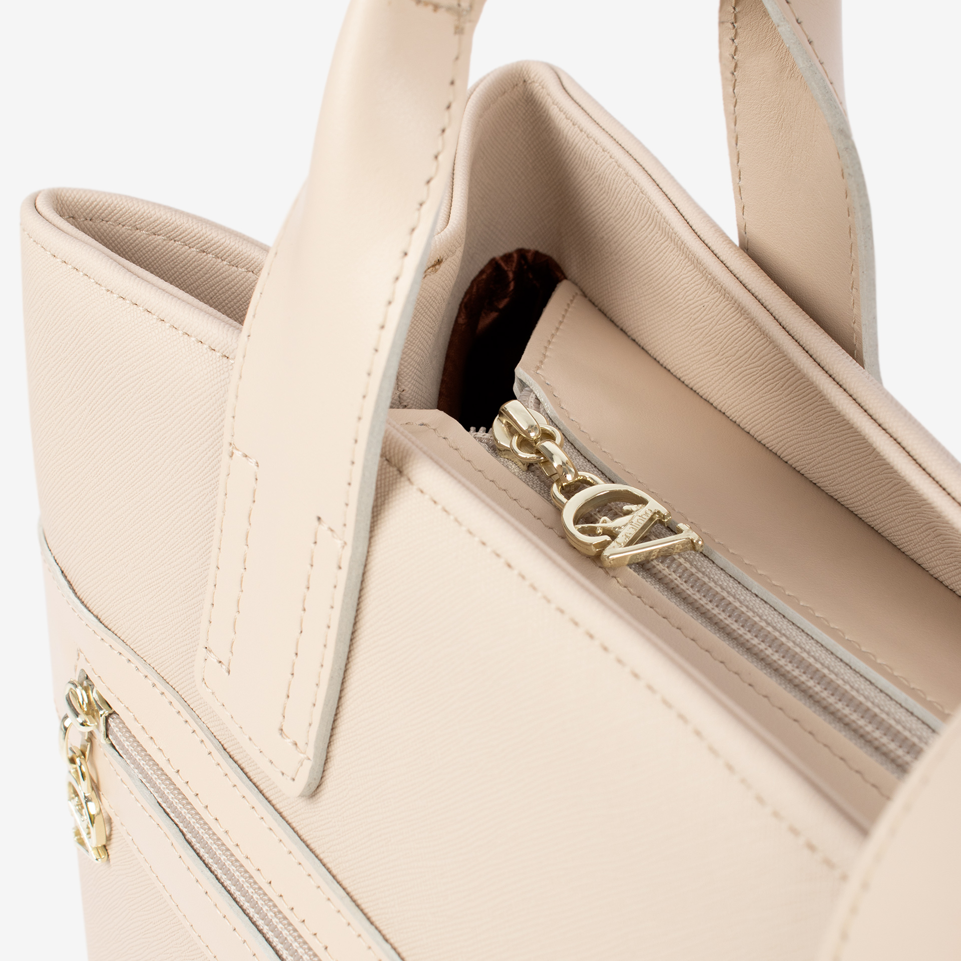 Dois bolsos pequenos no interior um com fecho de correr e separador interior a meio.