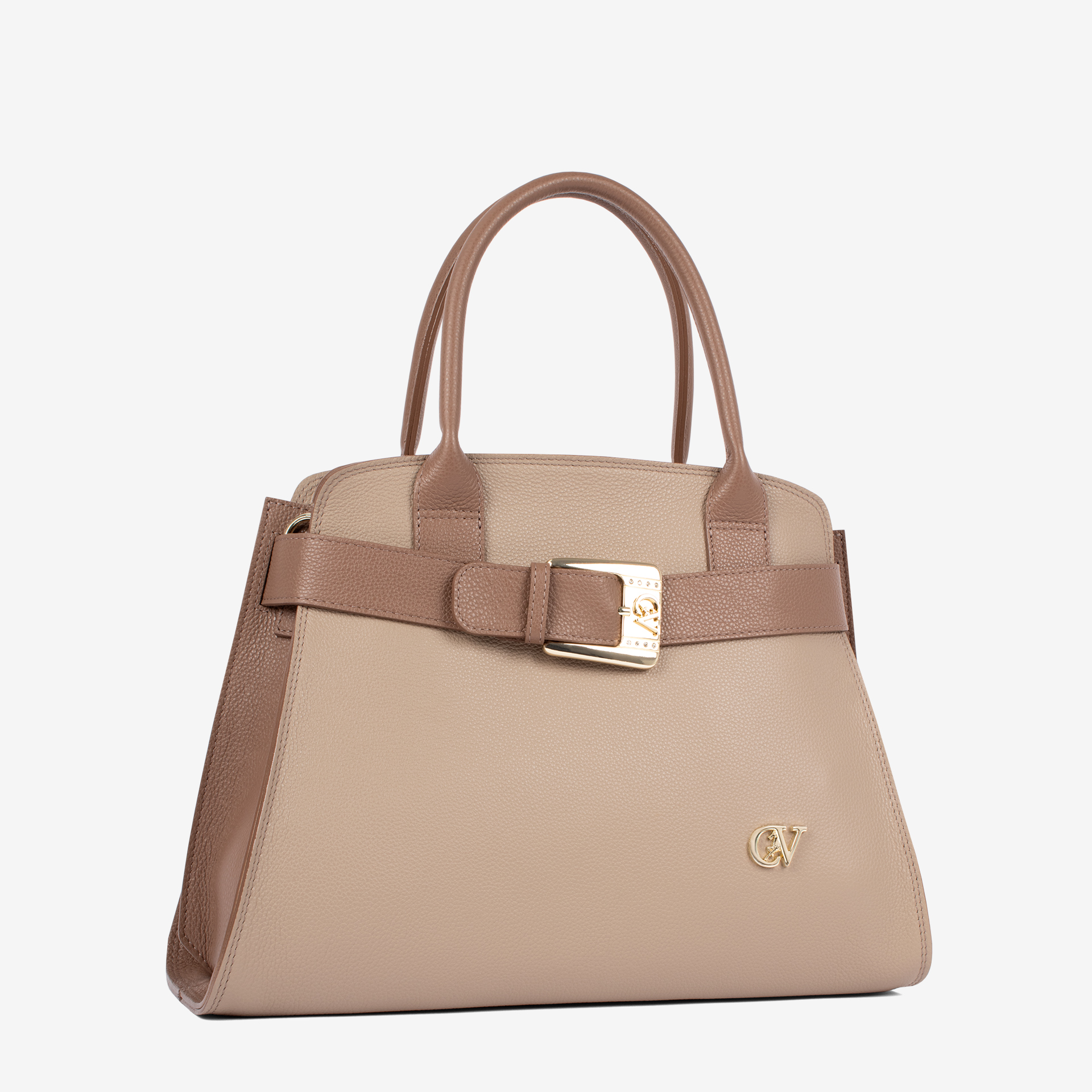 Mala da marca Cavalinho em pele genuína bege e taupe.