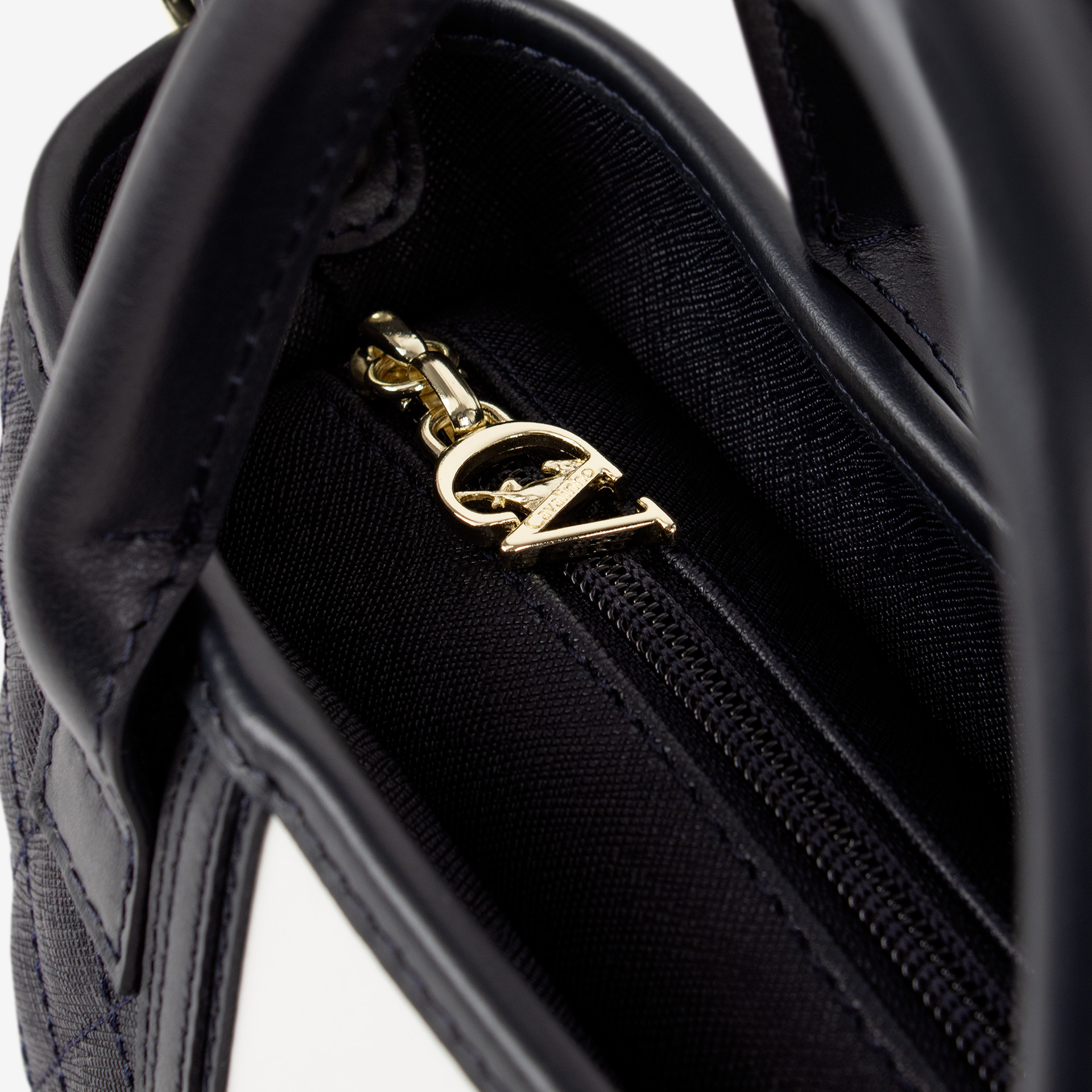 Dois bolsos pequenos no interior um com fecho de correr.