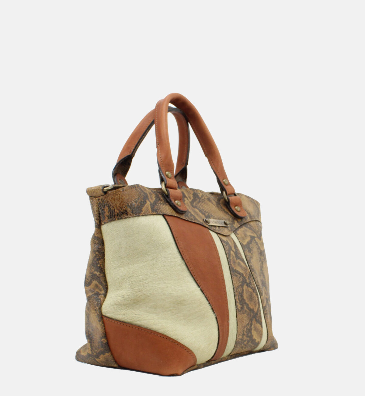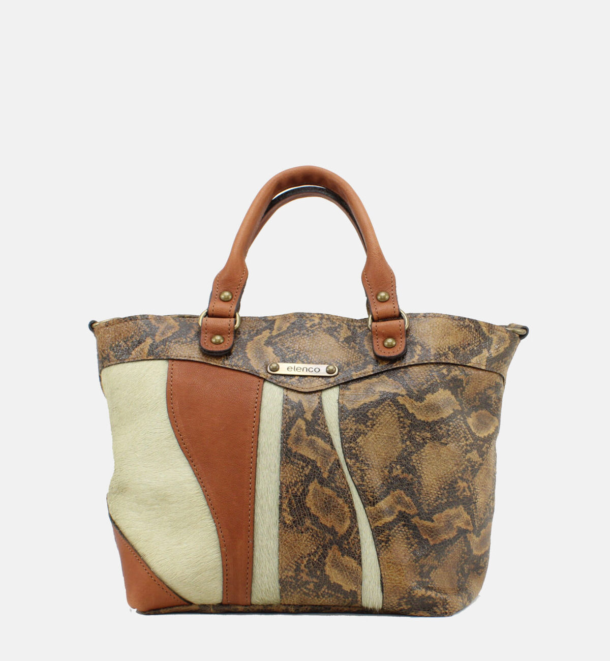 Mala da marca Elenco em pele genuína nas cores bege, camel e castanho. Abertura principal com fecho de correr. Três bolsos pequenos no interior. Bolso exterior com fecho de correr. Asa dupla de mão em pele e alça de ombro e tiracolo ajustável e removível em pele. Aplicações em metal bronze. Forro em tecido. Inclui um saco de tecido para proteger a sua bolsa enquanto não a usa.