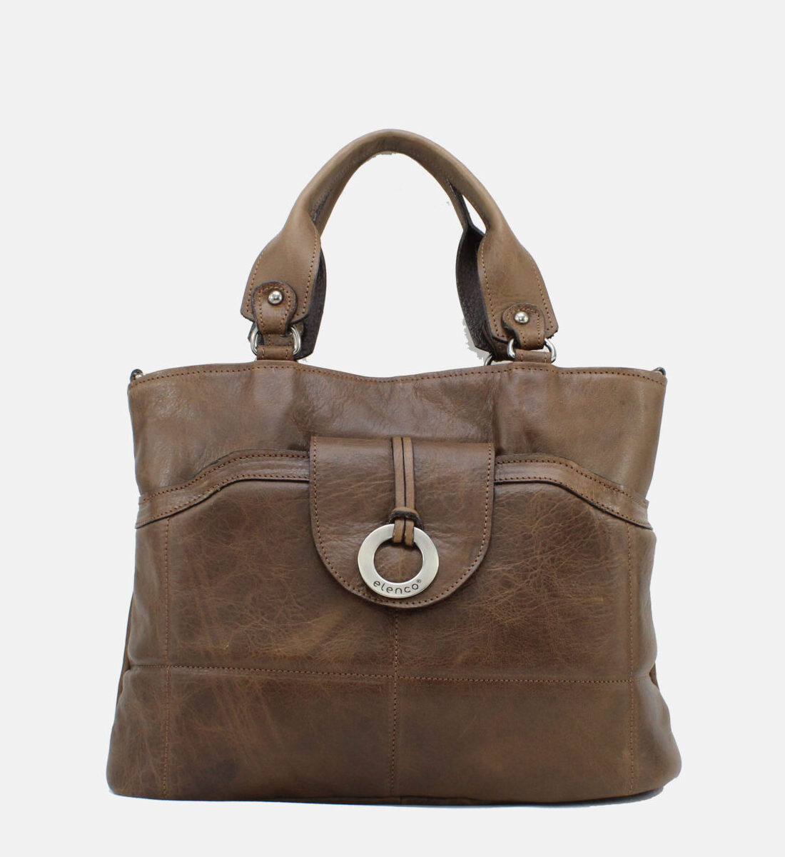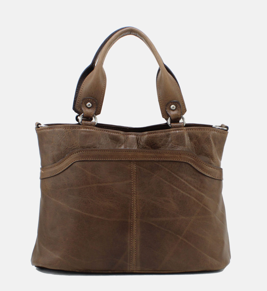 Asa dupla de mão em e alça de ombro e tiracolo ajustável e removível em pele.