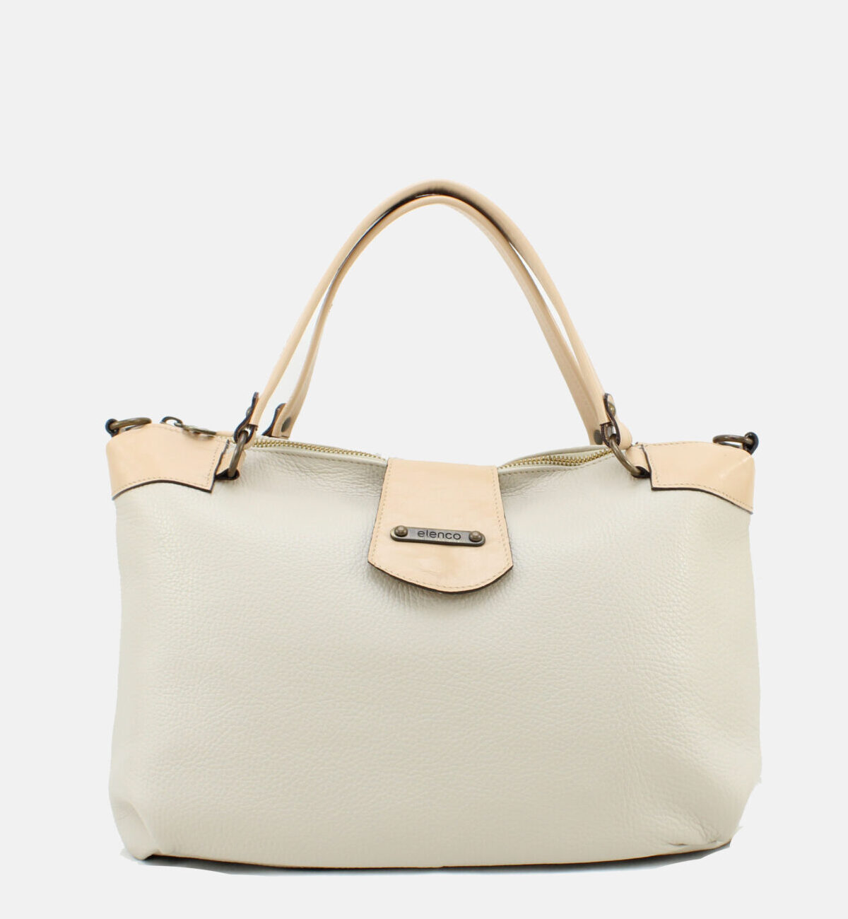 Mala da marca Elenco em pele genuína na cor bege.