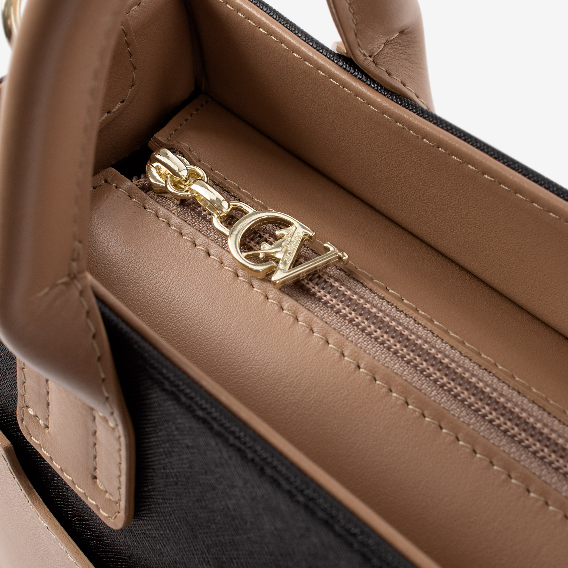 Dois bolsos pequenos no interior um com fecho de correr.