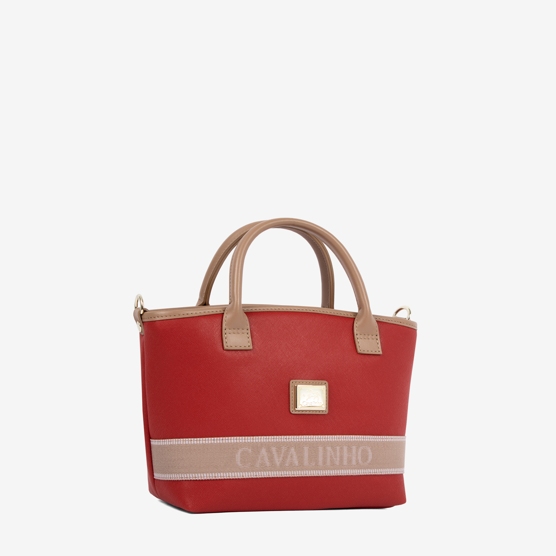 Mala da marca Cavalinho em tela vermelha com detalhes em pele genuína bege.