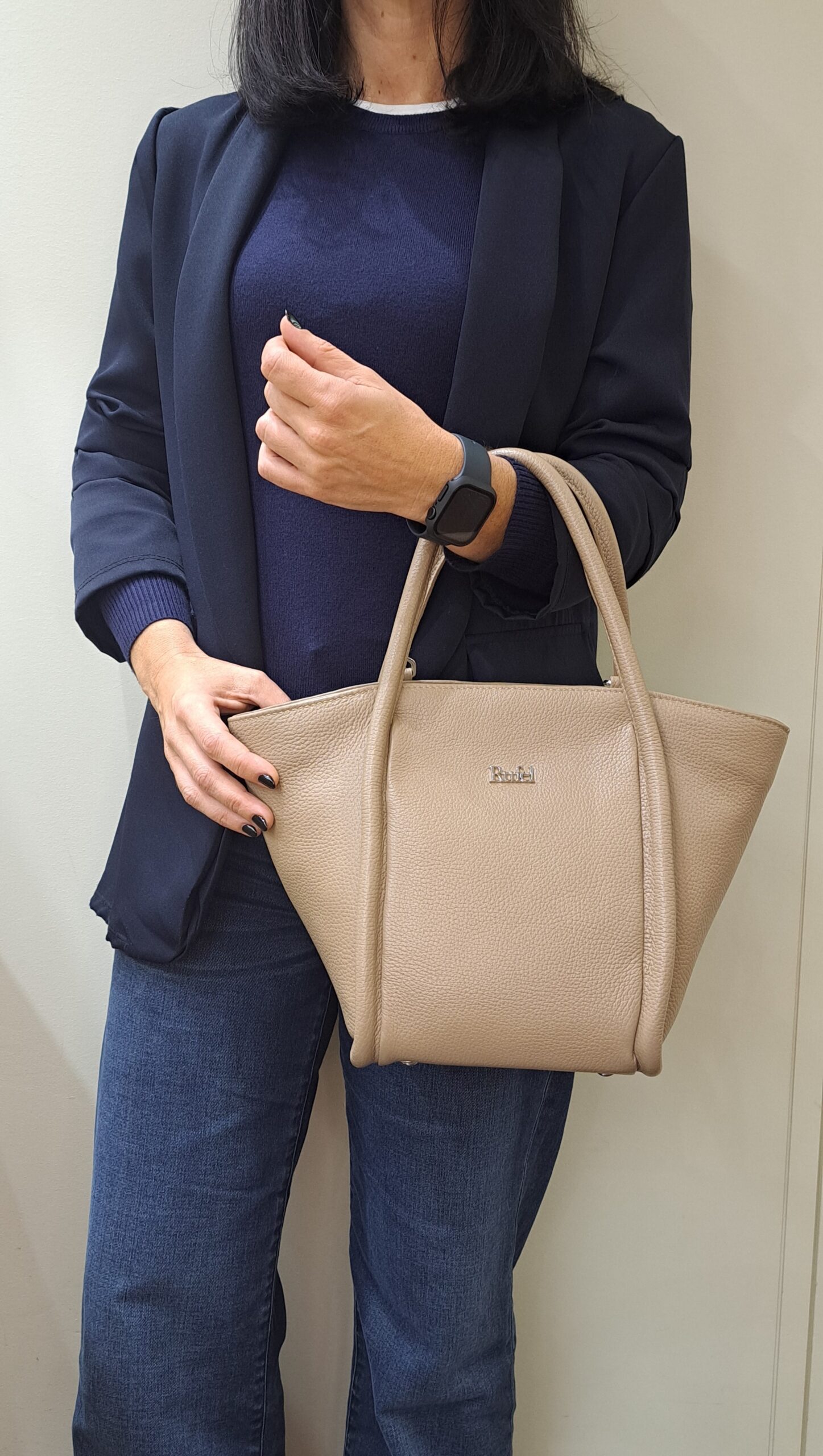 Mala da marca Rufel em pele genuína na cor taupe.