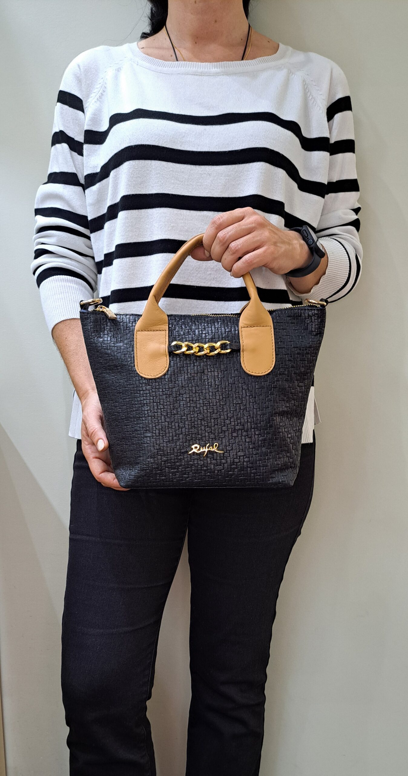 Mala da marca Rufel em pele genuína nas cores preto e camel.