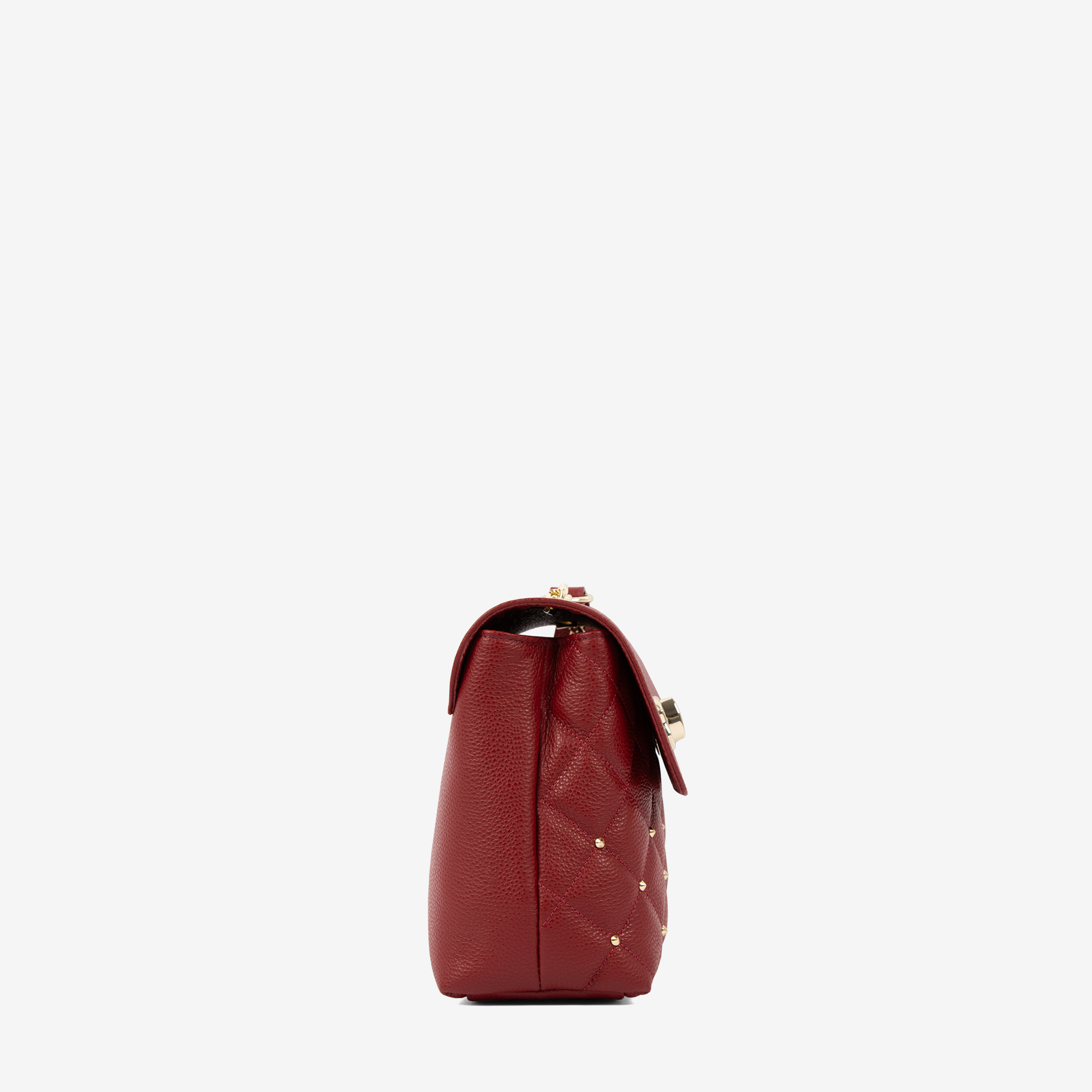 Alça de ombro em pele e corrente dourada.