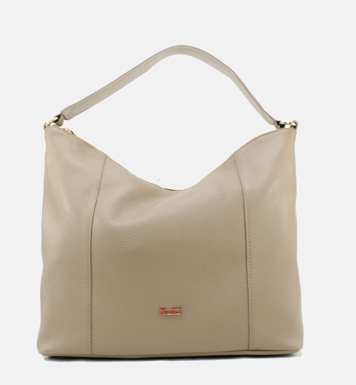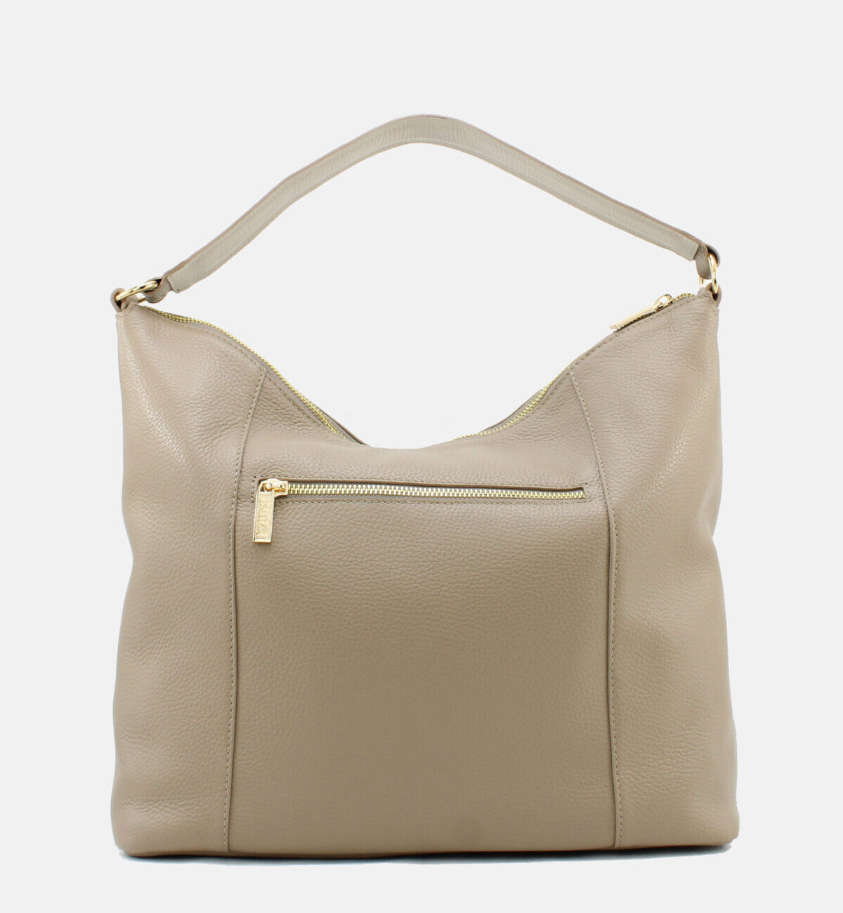 Asa de mão e alça de ombro e tiracolo ajustável e removível em pele.