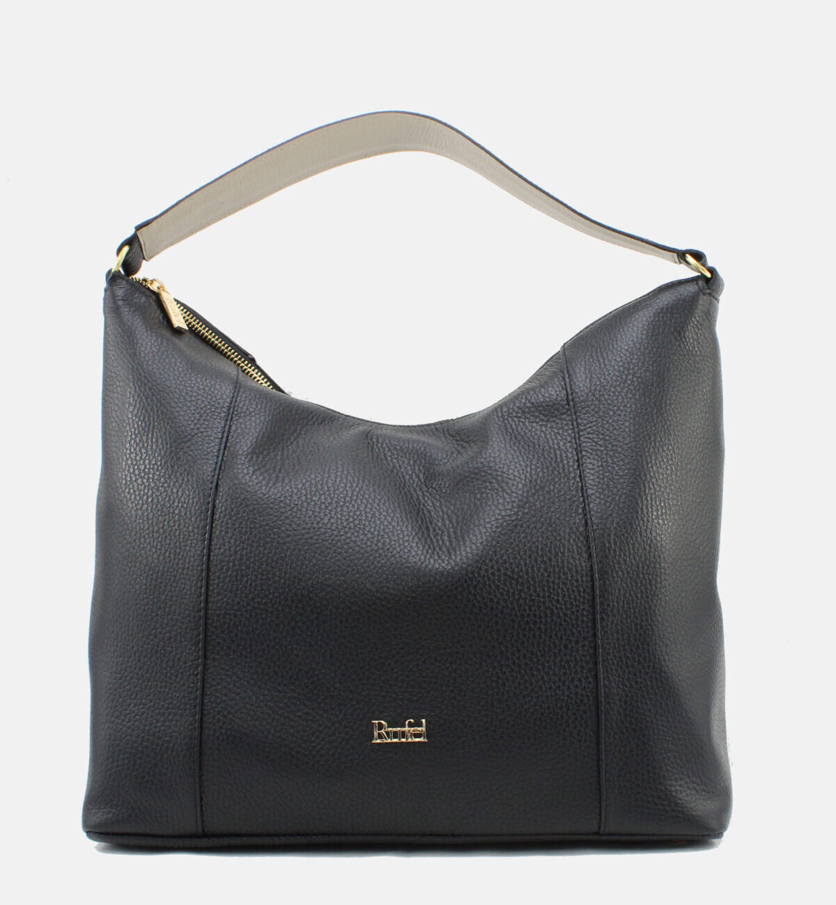 Asa de mão e alça de ombro e tiracolo ajustável e removível em pele.