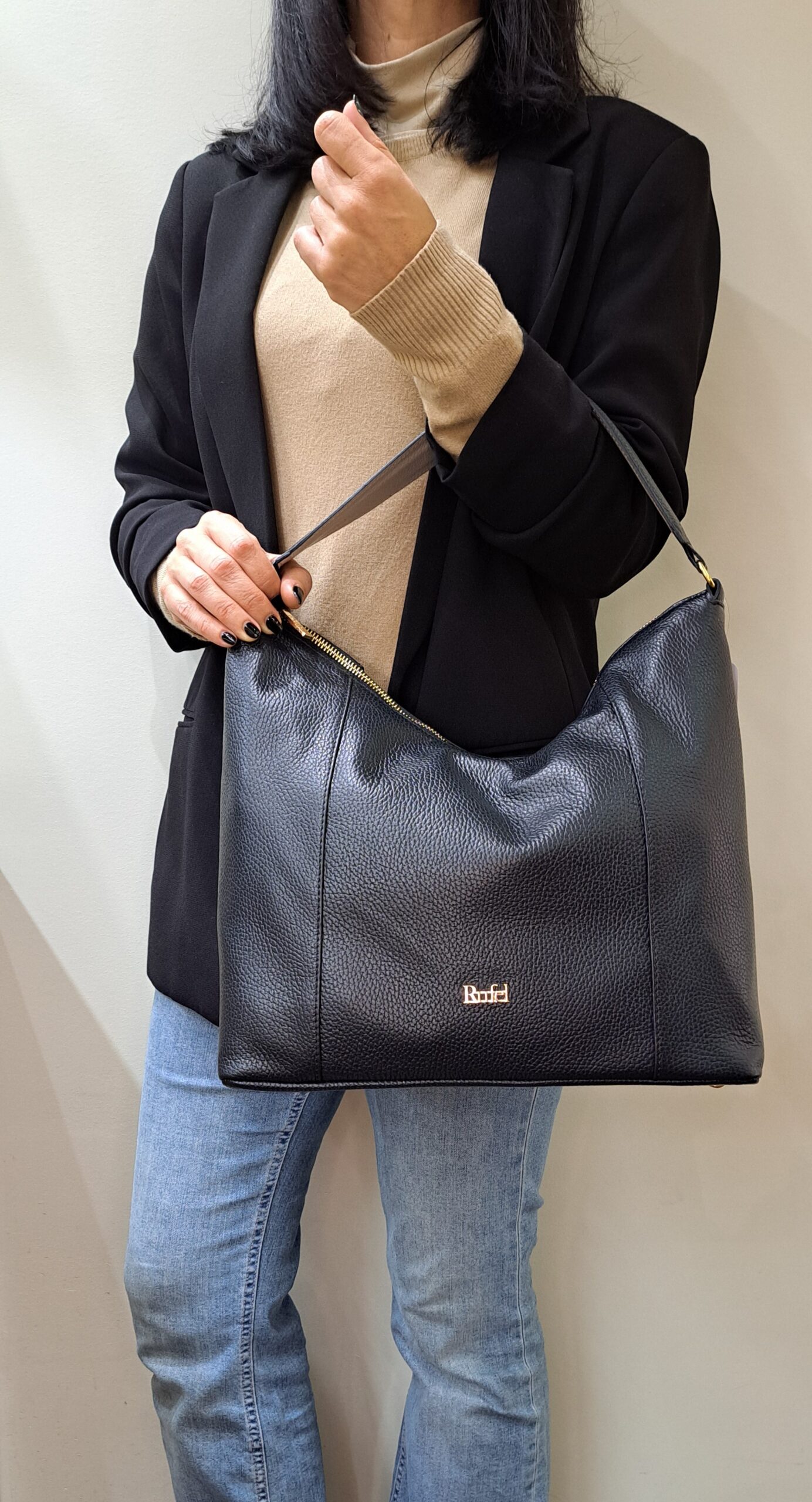 Mala da marca Rufel em pele genuína na cor preta.