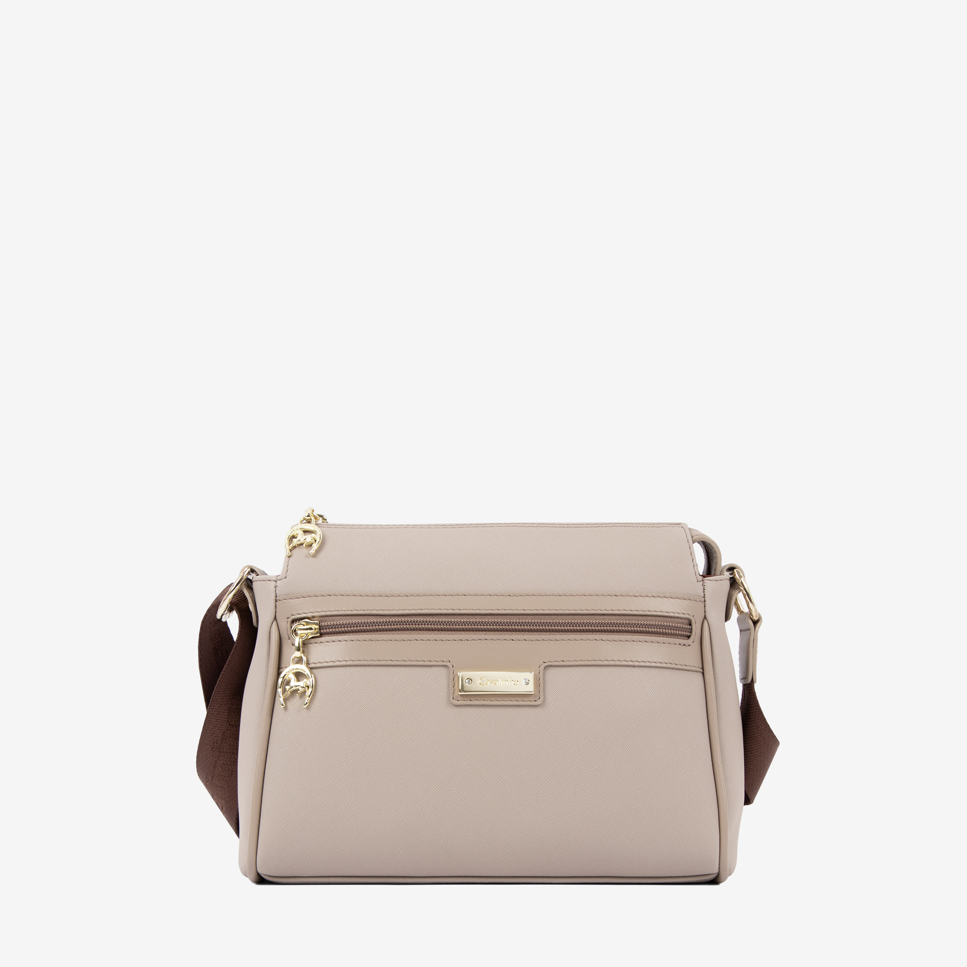 Mala da marca Cavalinho em tela cinza com detalhes em pele genuína cinza.