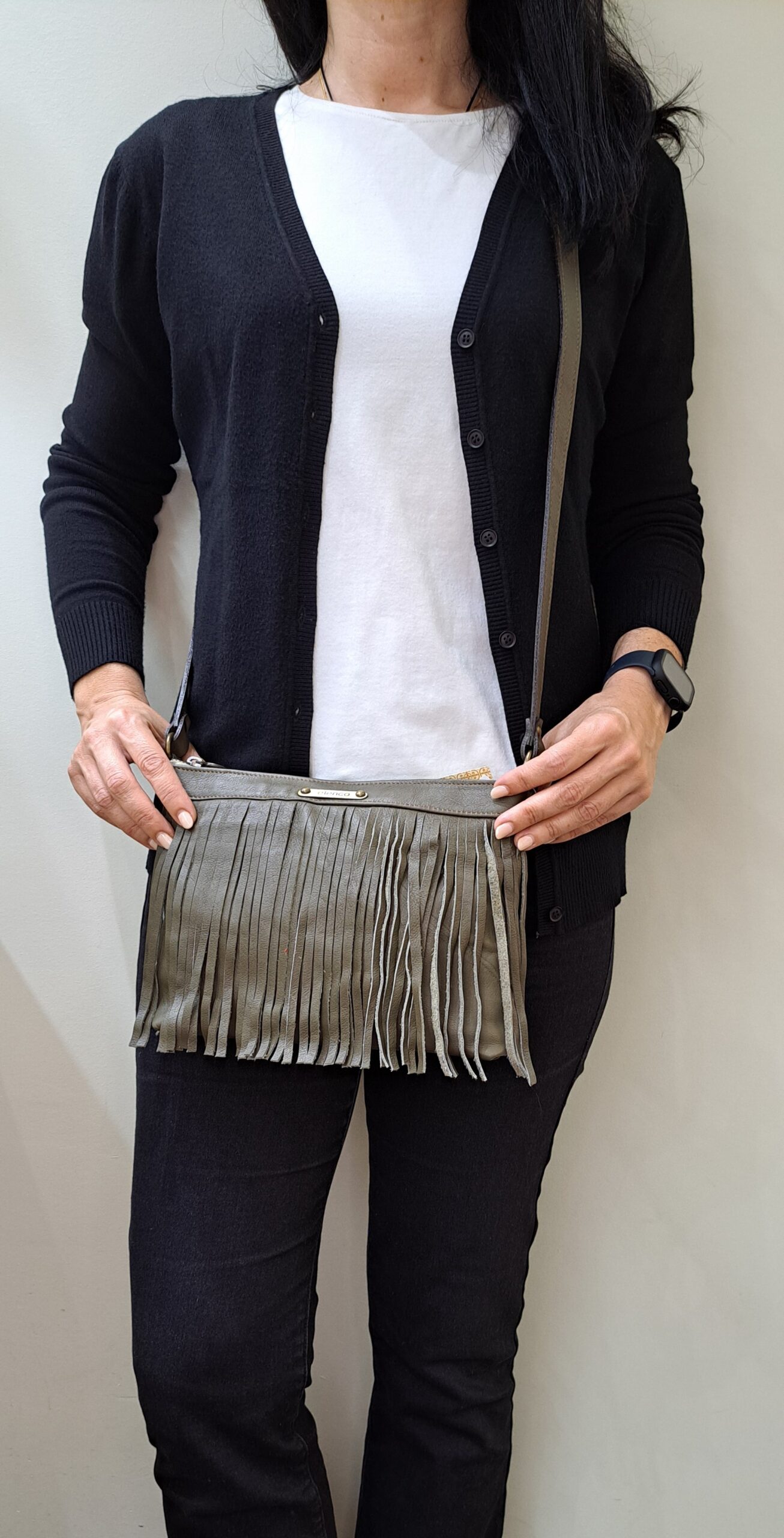 Mala da marca Elenco em pele genuína na cor verde. Abertura principal com fecho de correr. Um bolso pequeno no interior. Alça de ombro e tiracolo ajustável em pele. Aplicações em metal bronze. Forro em tecido. Inclui um saco de tecido para proteger a sua bolsa enquanto não a usa.