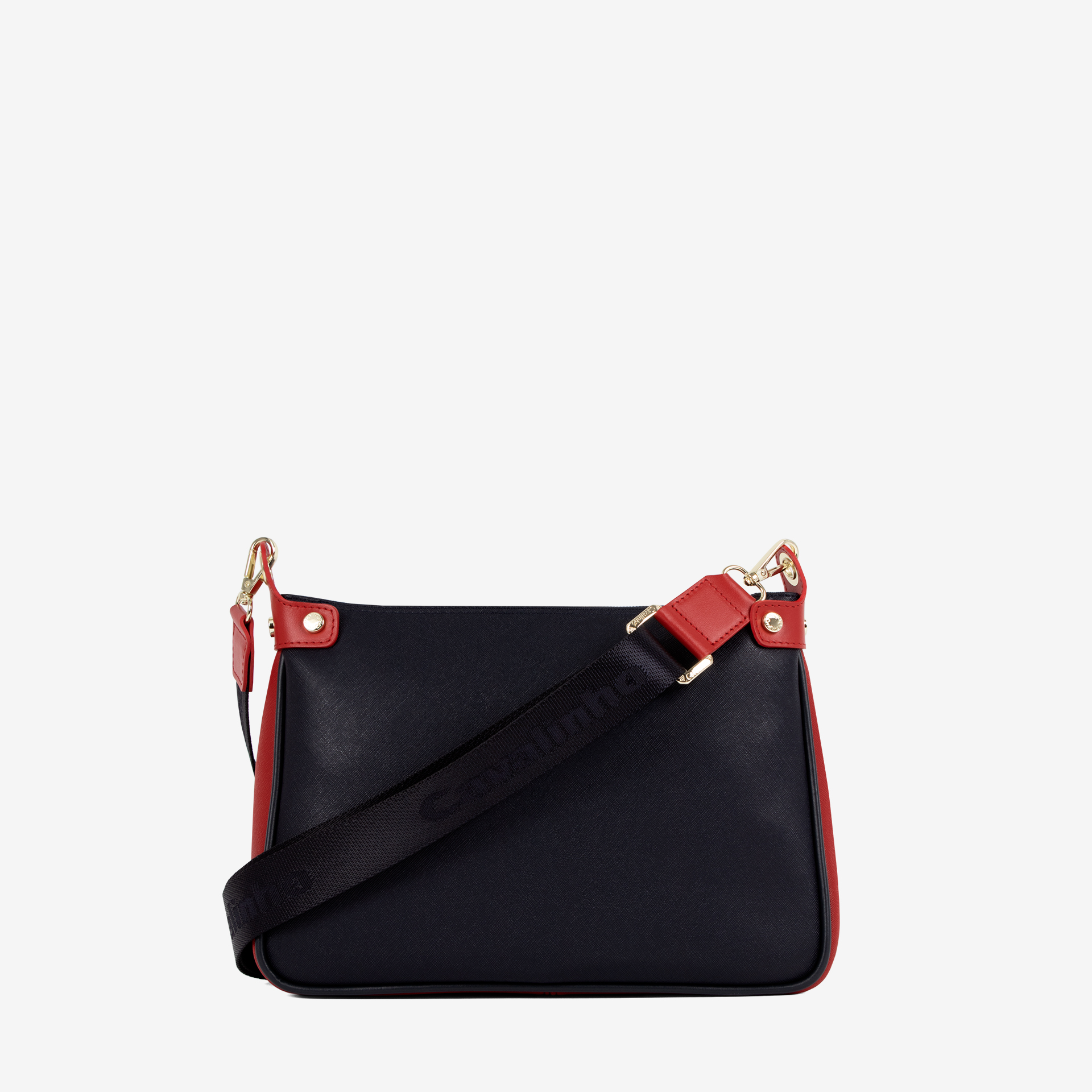 Alça de ombro e tiracolo ajustável em pele.