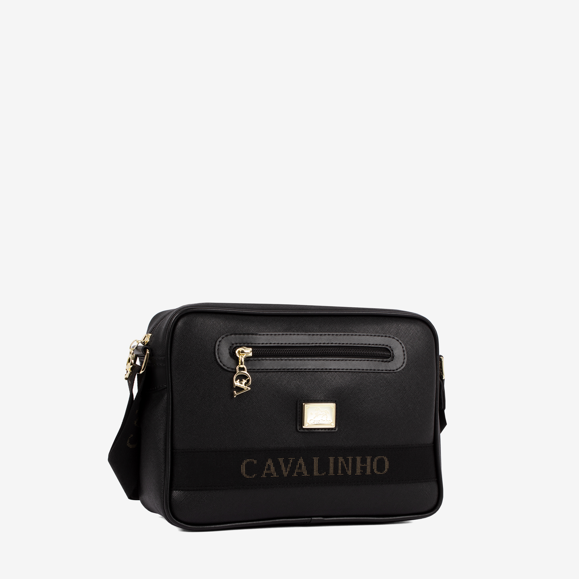 Mala da marca Cavalinho em tela preta com detalhes em pele genuína preta. Abertura principal com fecho de correr.