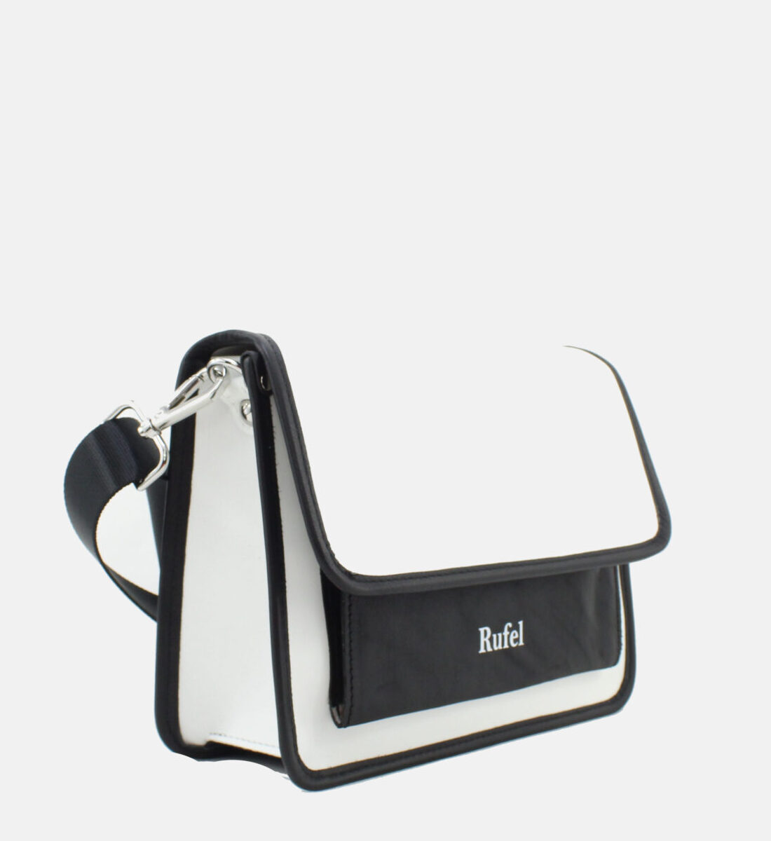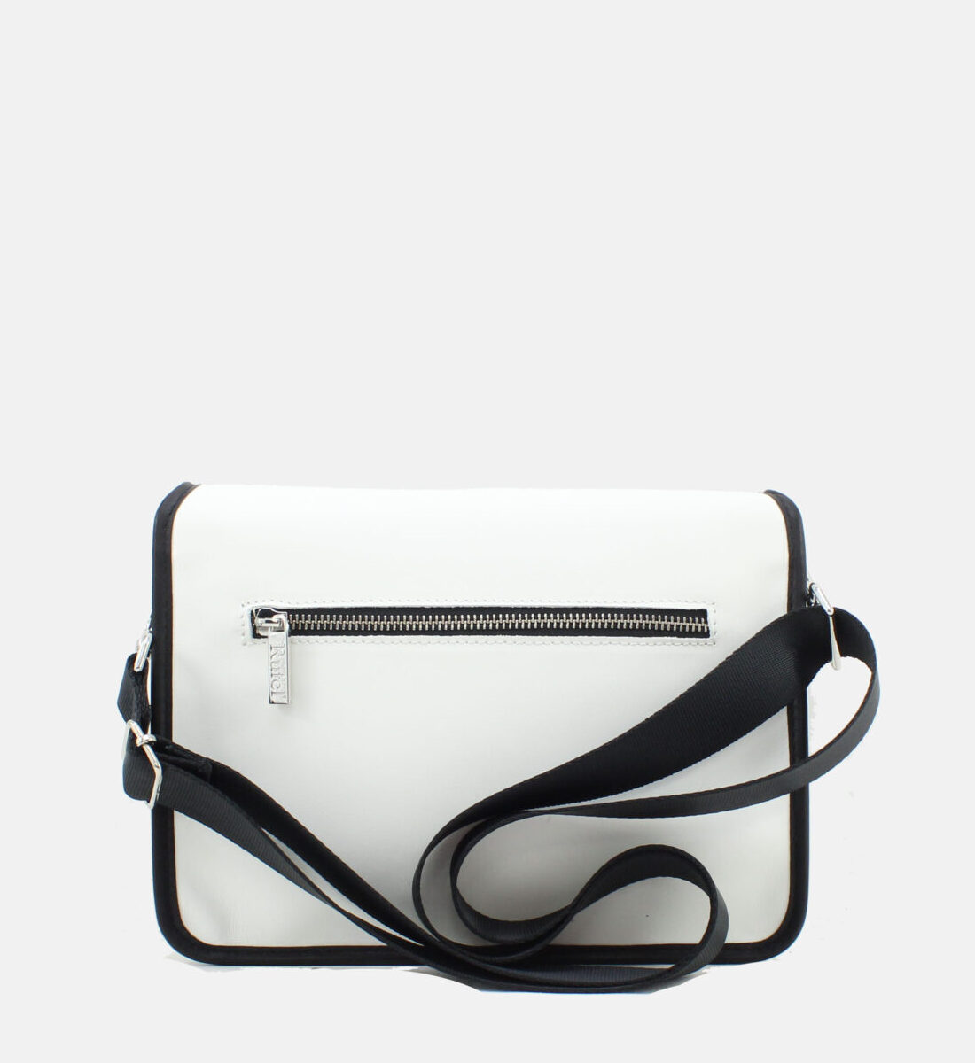 Mala da marca Rufel em pele genuína nas cores branco e preto.