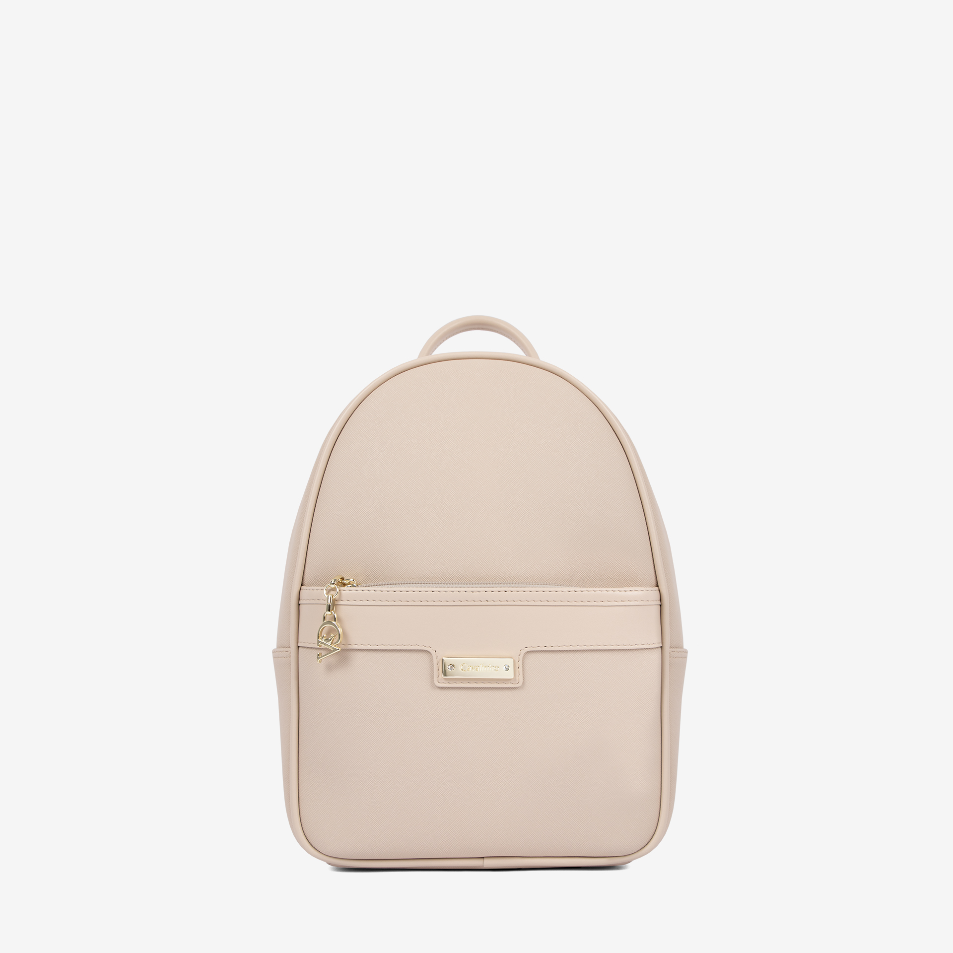Mochila da marca Cavalinho em tela bege com detalhes em pele genuína bege.