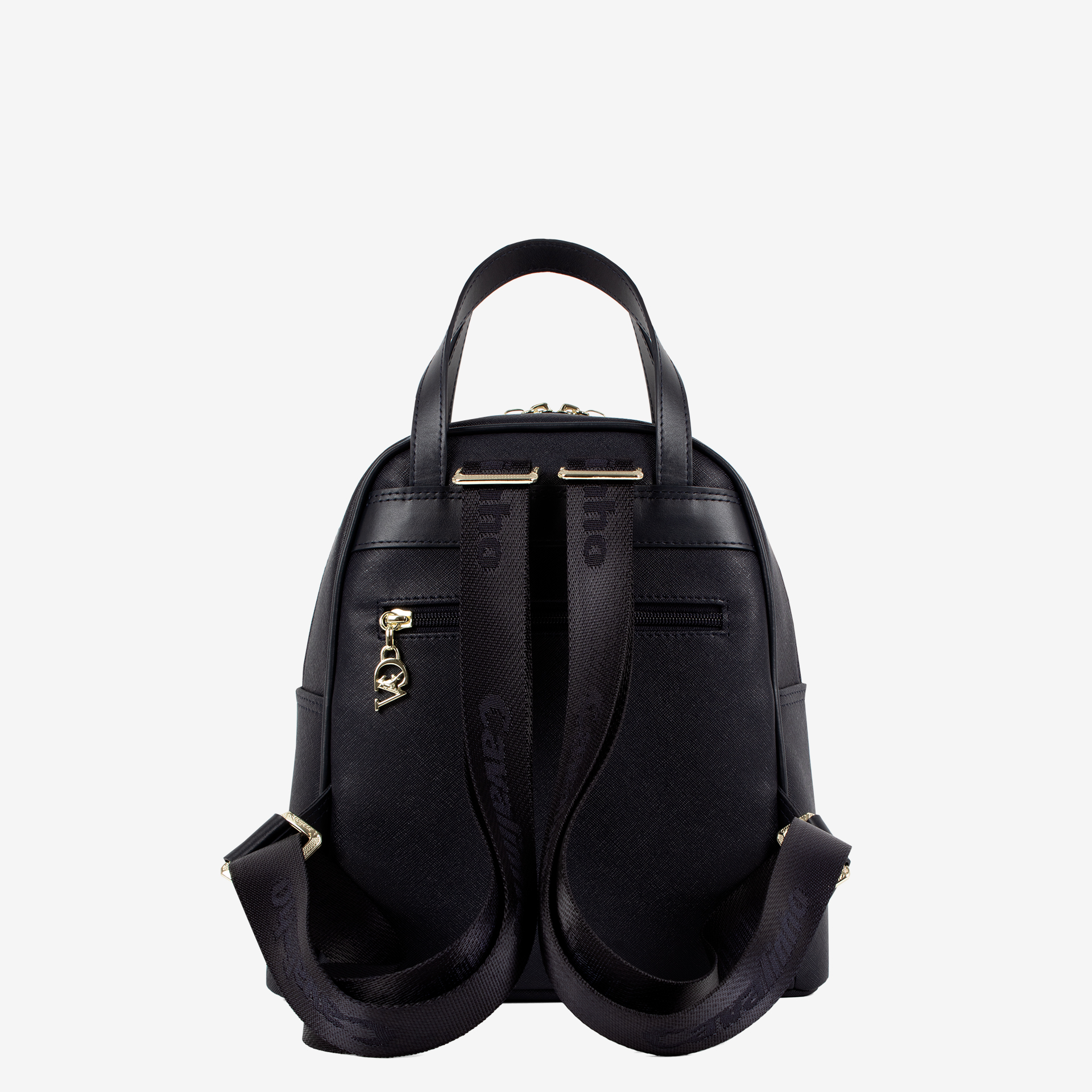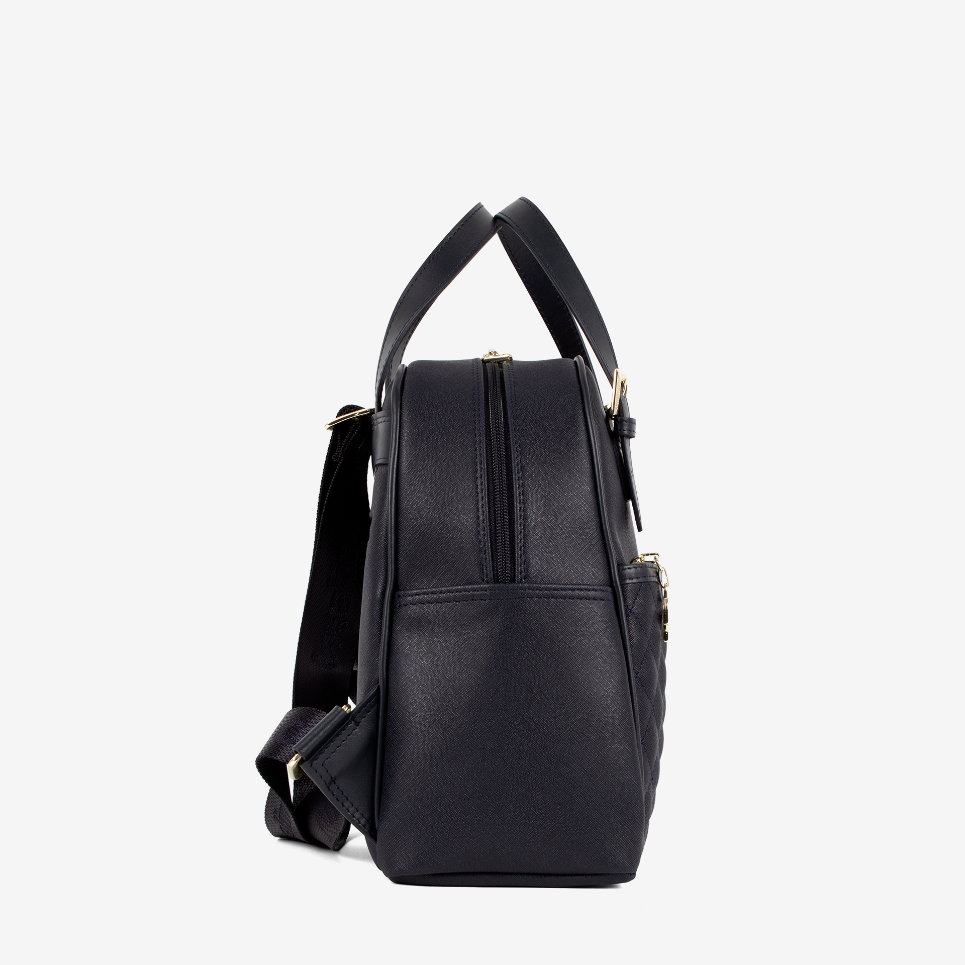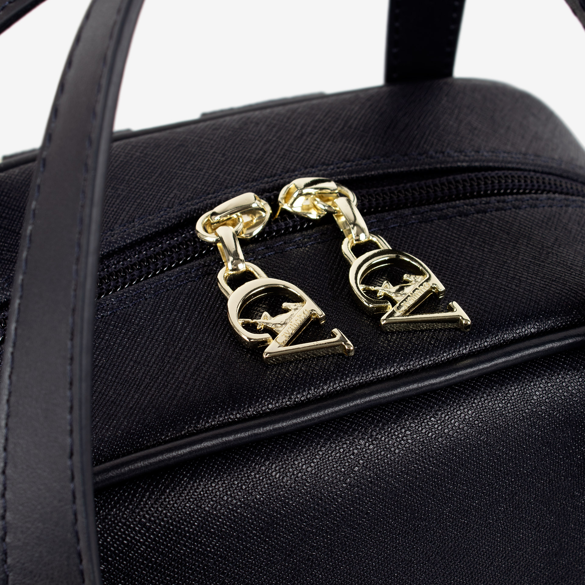 Duas asas duplas de mão em pele e duas alças ajustáveis em poliéster.