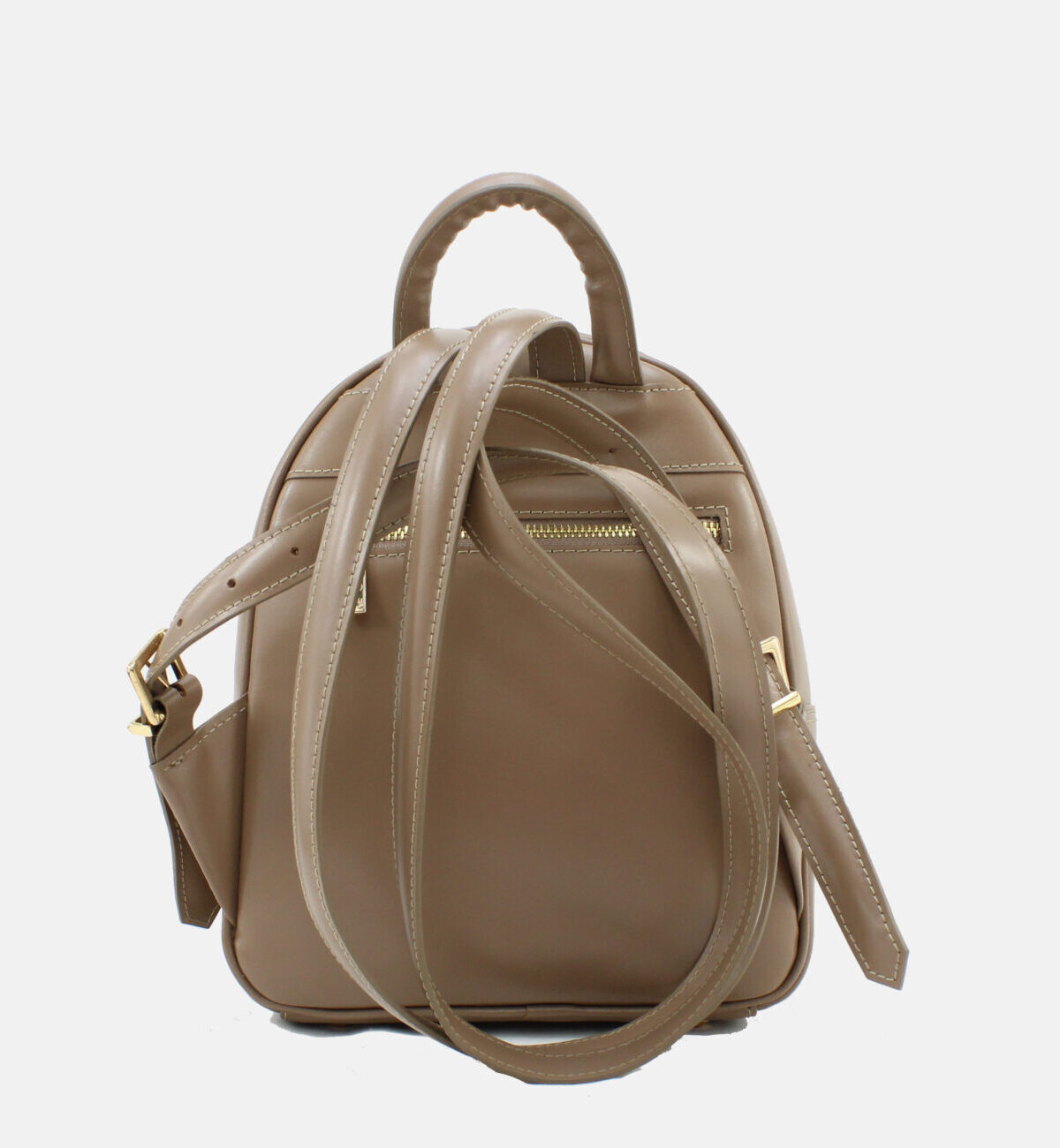 Mochila da marca Rufel em pele genuína na cor taupe. Abertura principal com fecho de correr. Dois bolsos pequenos no interior um com fecho de correr. Dois bolsos exteriores com fecho de correr. Duas alças ajustáveis em pele e uma asa de mão em pele. Aplicações em metal dourado. Forro em tecido. Inclui um saco de tecido para proteger a sua bolsa enquanto não a usa.