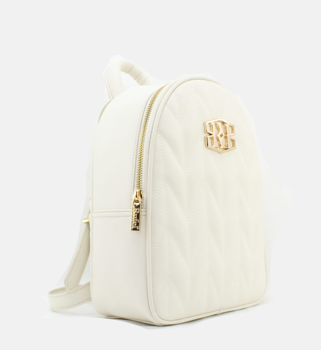Mochila da marca Rufel em pele genuína na cor bege.