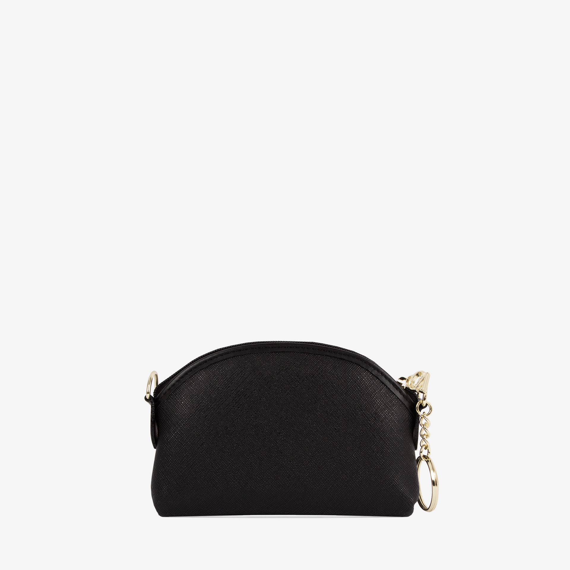 Abertura principal com fecho de correr e amplo interior, argola exterior para colocar chaves.