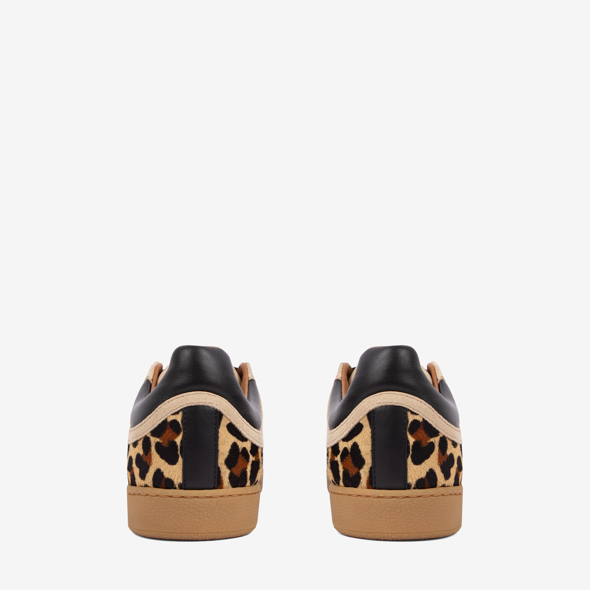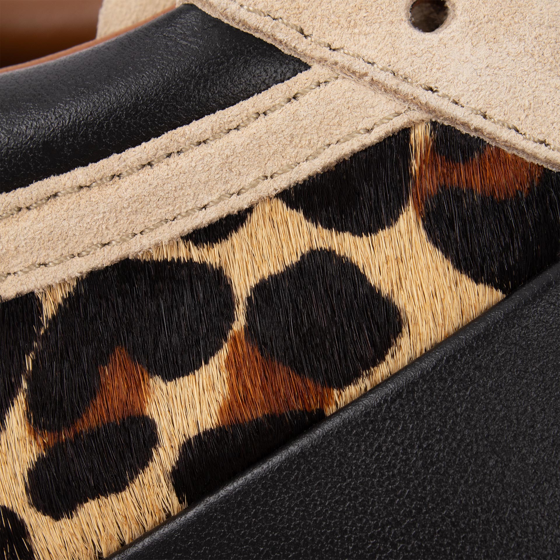 Nas cores bege e preto – animal print.